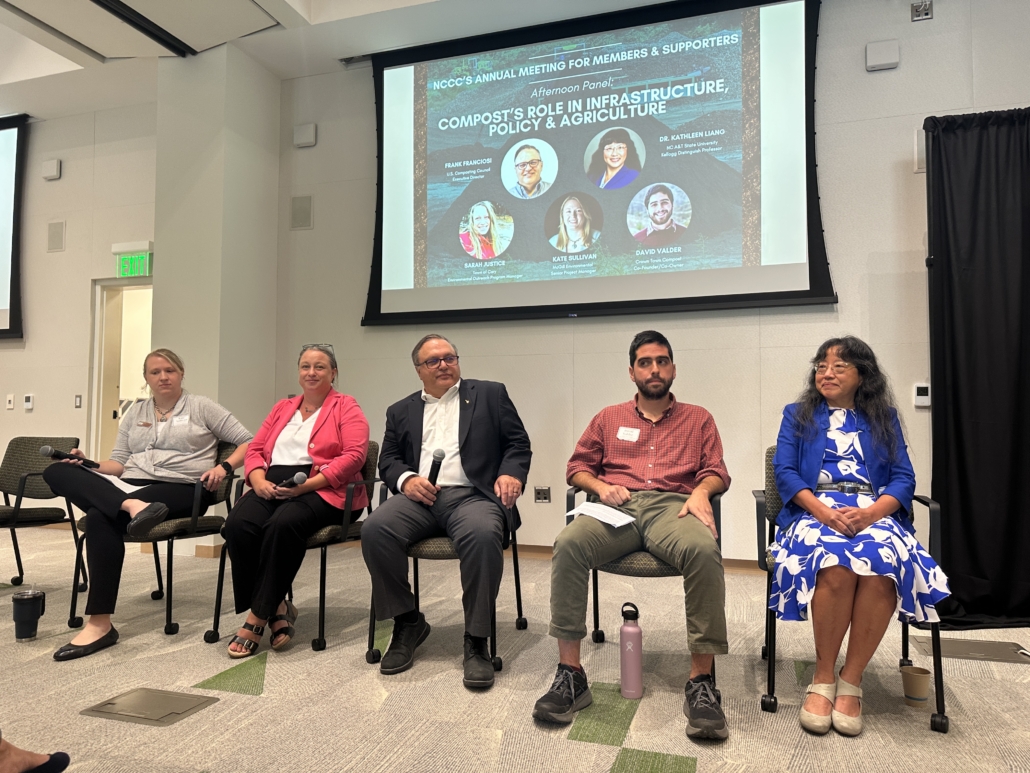 The 2025 Annual Meeting Annual Meeting theme, “Strong Economies and Sustainable Communities Start with Compost”, highlights the powerful role composting plays in shaping resilient local systems, and the robust economic opportunity the composting industry has in North Carolina. Attendees gained insights from successful North Carolina Composting experts, the US Composting Council Executive Director, the NC Council’s recent legislative work, reports from NCCC’s 2025 grant recipients and Board of Directors. It was a fun day networking and learning how compost contributes to resilient local economies and thriving communities!